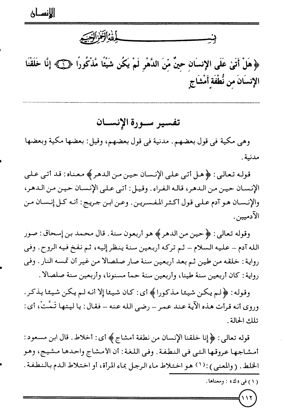 {هَل أَتَى على الْإِنْسَان حِين من الدَّهْر لم يكن شَيْئا مَذْكُورا (1) إِنَّا خلقنَا الْإِنْسَان من نُطْفَة أمشاج} .