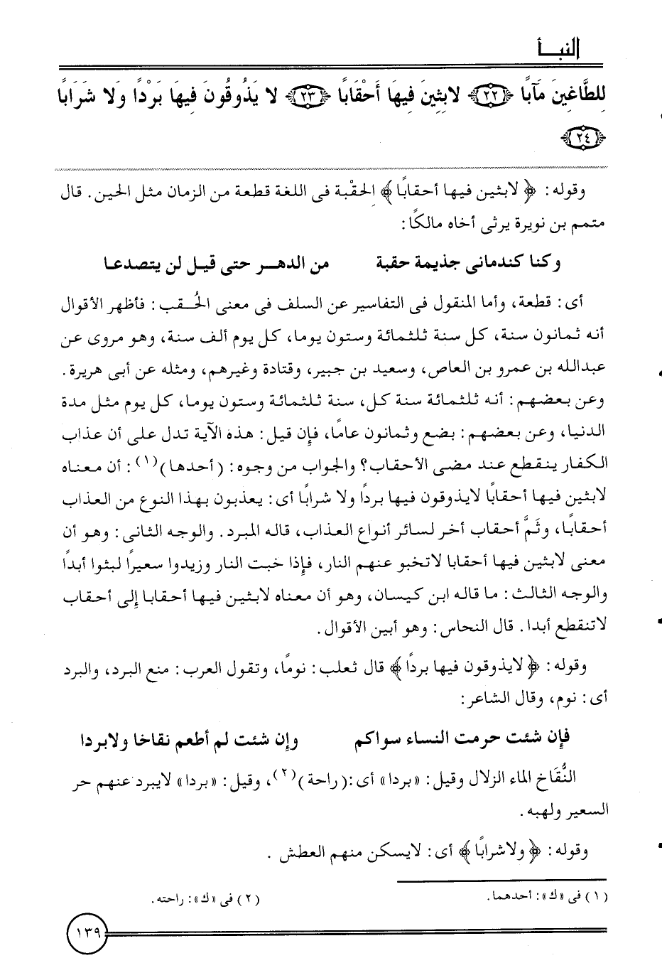 {للطاغين مآبا (22) لابثين فِيهَا أحقابا (23) لَا يذوقون فِيهَا بردا وَلَا شرابًا (24) } .