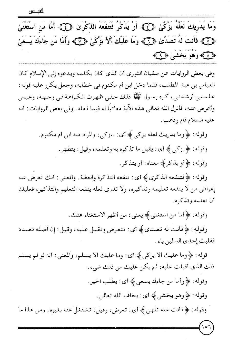 {وَمَا يدْريك لَعَلَّه يزكّى (3) أَو يذكر فتنفعه الذكرى (4) أما من اسْتغنى (5) فَأَنت لَهُ تصدى (6) وَمَا عَلَيْك أَلا يزكّى (7) وَأما من جَاءَك يسْعَى (8) وَهُوَ يخْشَى (9) } .