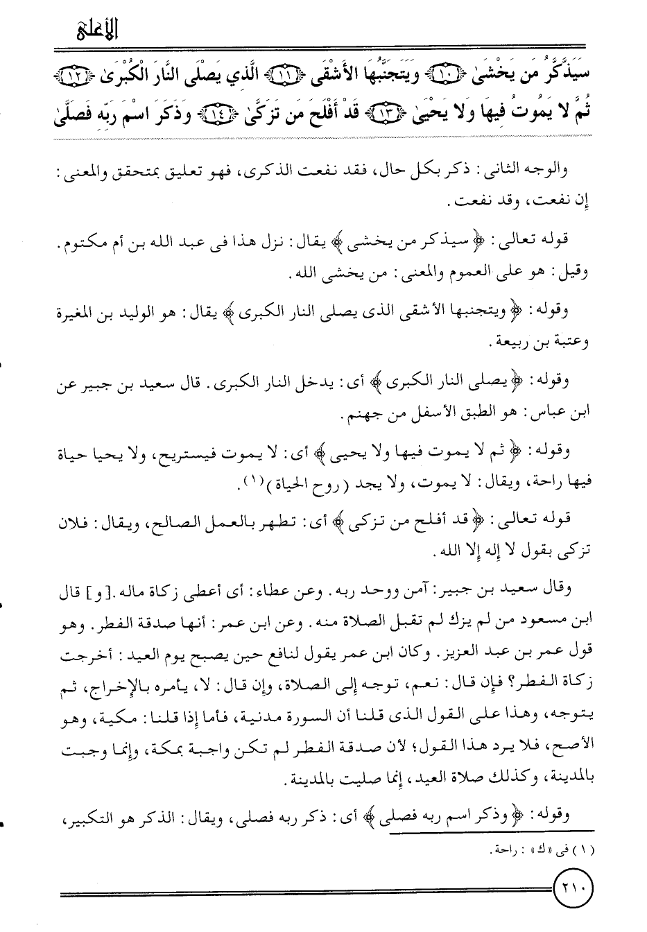 {سَيذكرُ من يخْشَى (10) ويتجنبها الأشقى (11) الَّذِي يصلى النَّار الْكُبْرَى (12) ثمَّ لَا يَمُوت فِيهَا وَلَا يحيى (13) قد أَفْلح من تزكّى (14) وَذكر اسْم ربه فصلى} .