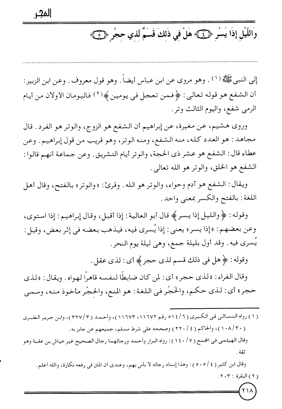 {وَاللَّيْل إِذا يسر (4) هَل فِي ذَلِك قسم لذِي حجر (5) } إِلَى النَّبِي.
