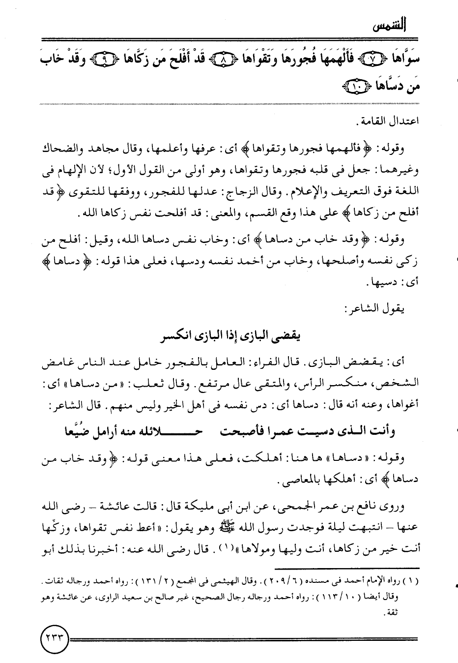{سواهَا (7) فألهمها فجورها وتقواها (8) قد أَفْلح من زكاها (9) وَقد خَابَ من دساها (10) } . اعْتِدَال الْقَامَة.