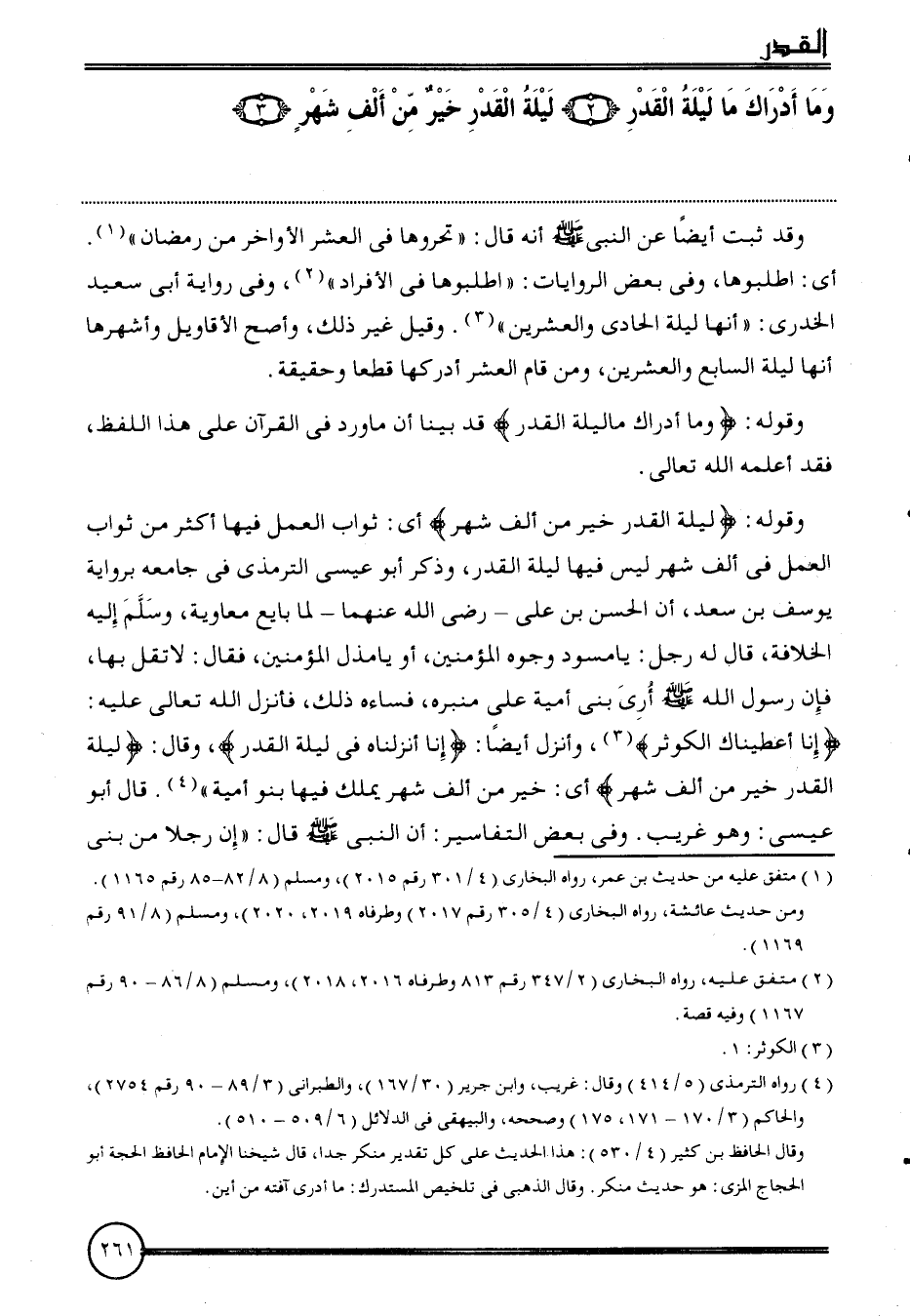 {وَمَا أَدْرَاك مَا لَيْلَة الْقدر (2) لَيْلَة الْقدر خير من ألف شهر (3) } وَقد ثَبت أَيْضا عَن النَّبِي أَنه قَالَ: " تحروها فِي الْعشْر الْأَوَاخِر من رَمَضَان ".