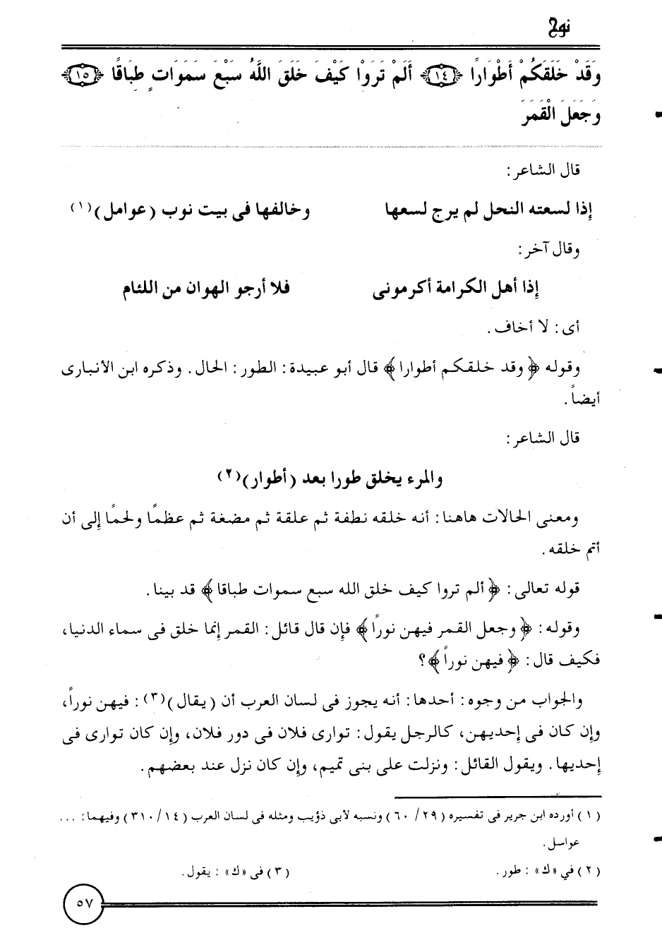 {وَقد خَلقكُم أطوارا (14) ألم تروا كَيفَ خلق الله سبع سموات طباقا (15) وَجعل الْقَمَر}