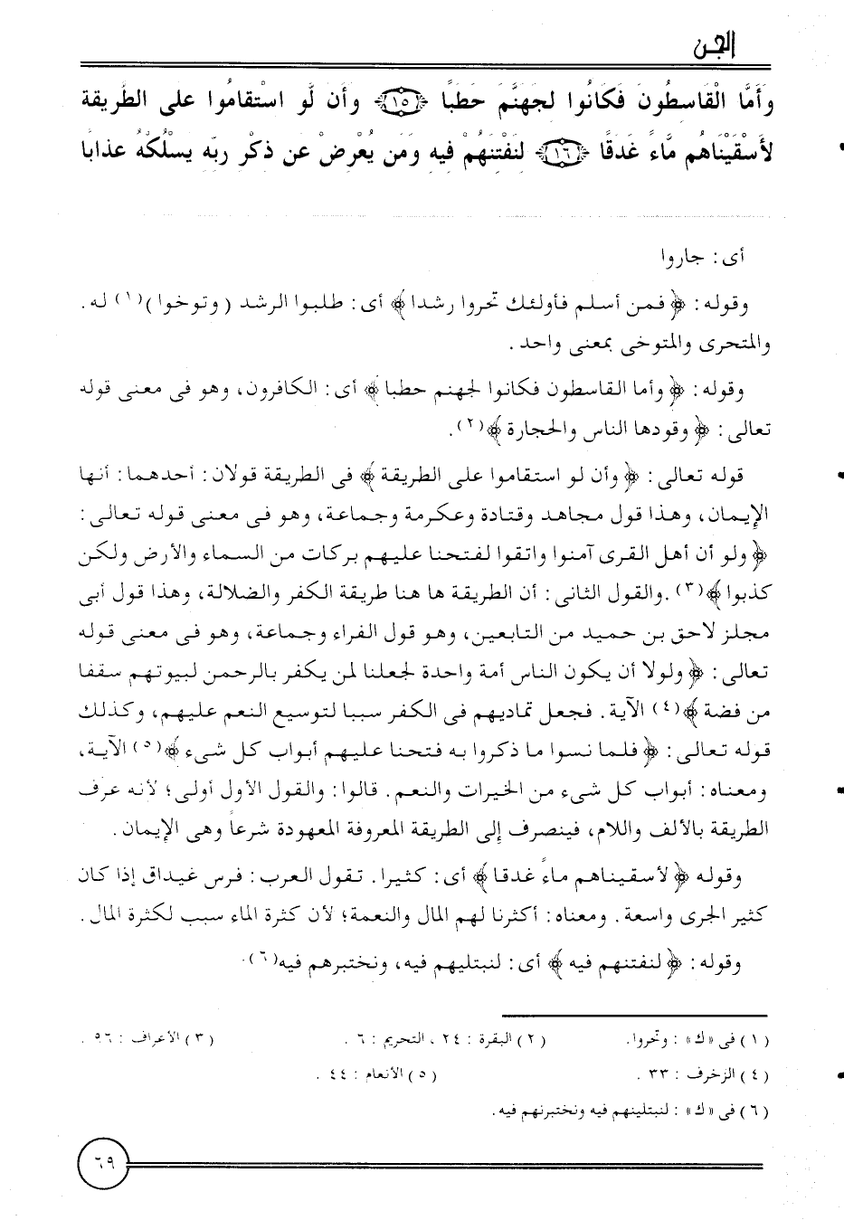 {وَأما القاسطون فَكَانُوا لِجَهَنَّم حطبا (15) وَأَن لَو استقاموا على الطَّرِيقَة لأسقيناهم مَاء غدقا (16) لنفتنهم فِيهِ وَمن يعرض عَن ذكر ربه يسلكه عذَابا} .