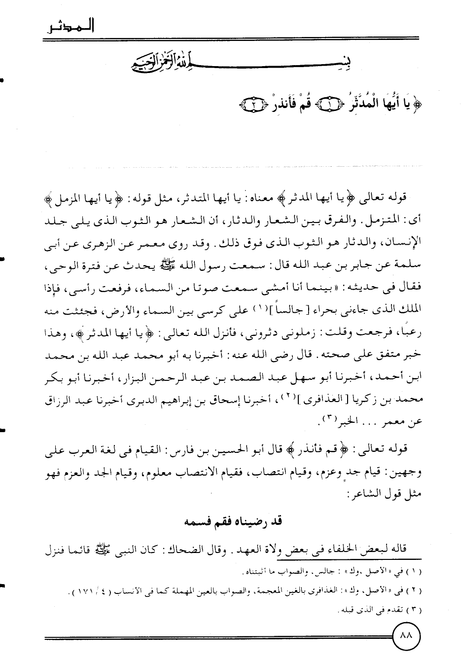 {يَا أَيهَا المدثر (1) ثمَّ فَأَنْذر (2) } .