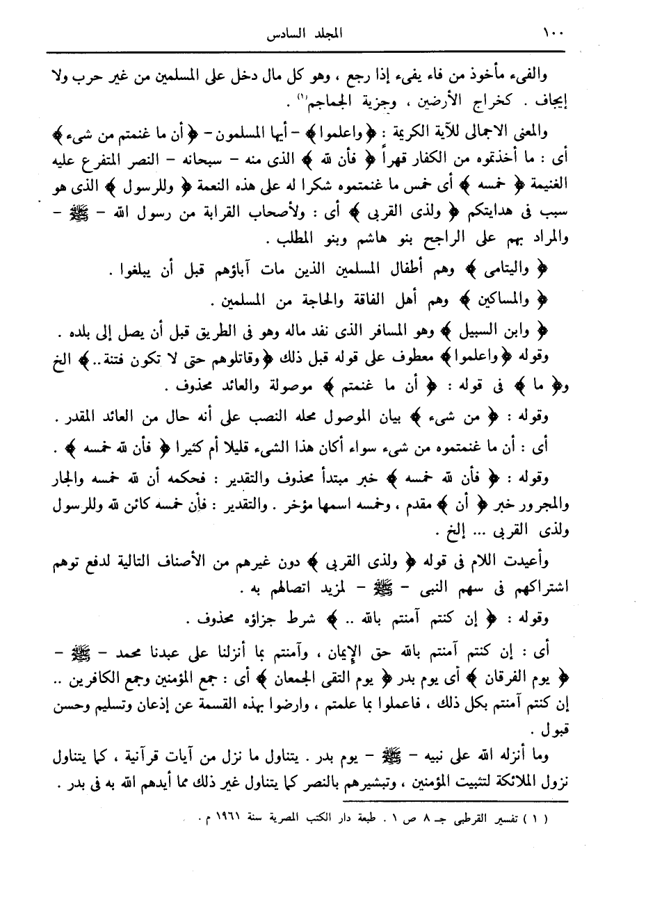 (1) تفسير القرطبي ج 8 ص 1. طبعة دار الكتب المصرية سنة 1961 م.