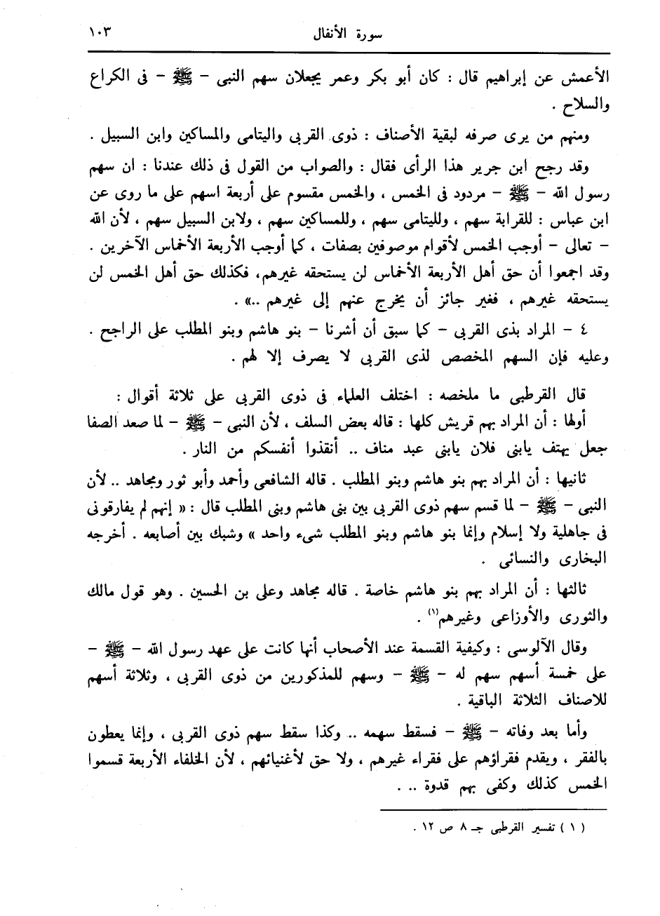4- المراد بذي القربى- كما سبق أن أشرنا- بنو هاشم وبنو المطلب على الراجح.