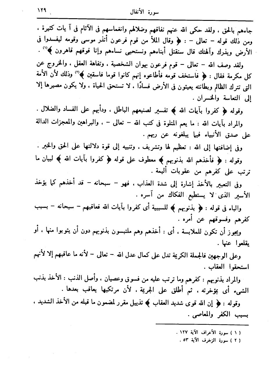 جاءهم بالحق، ولقد حكى الله عنهم نفاقهم وضلالهم وانغماسهم في الآثام في آيات كثيرة، ومن ذلك قوله- تعالى-: وَقالَ الْمَلَأُ مِنْ قَوْمِ فِرْعَوْنَ أَتَذَرُ مُوسى وَقَوْمَهُ لِيُفْسِدُوا فِي الْأَرْضِ وَيَذَرَكَ وَآلِهَتَكَ قالَ سَنُقَتِّلُ أَبْناءَهُمْ وَنَسْتَحْيِي نِساءَهُمْ وَإِنَّا فَوْقَهُمْ قاهِرُونَ «1» .