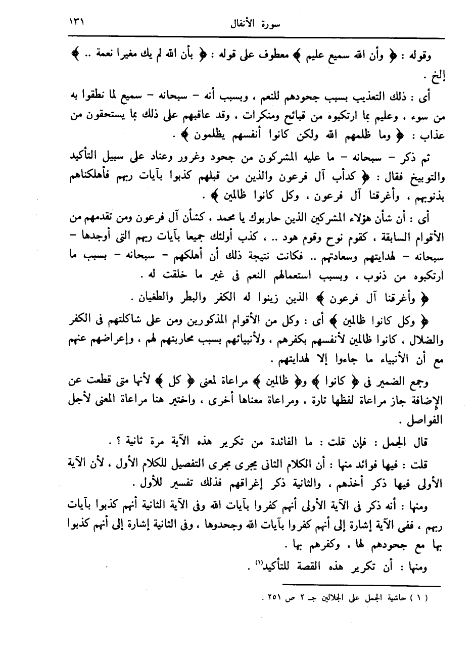 (1) حاشية الجمل على الجلالين ج 2 ص 251.