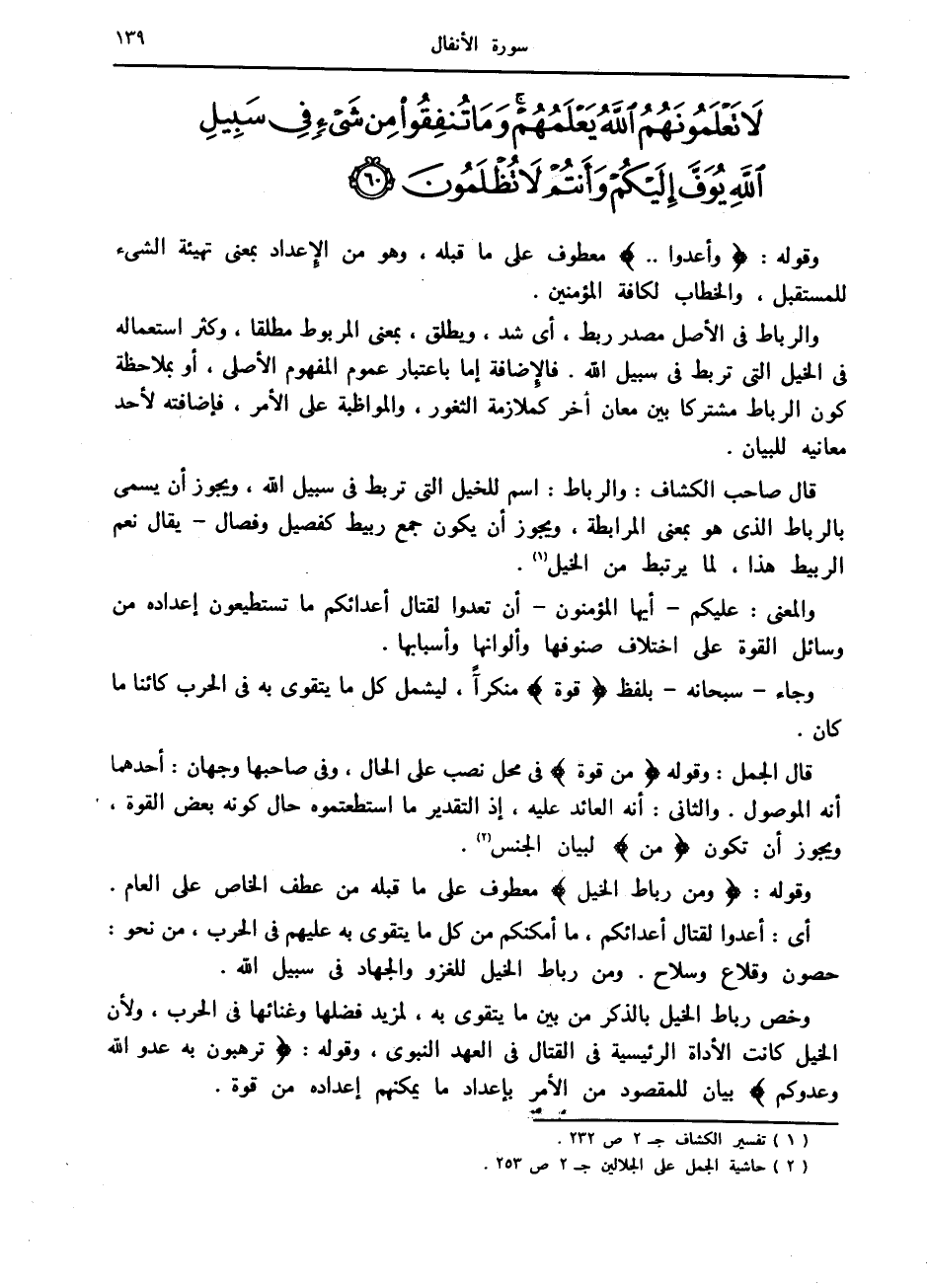 (2) حاشية الجمل على الجلالين ج 2 ص 253.