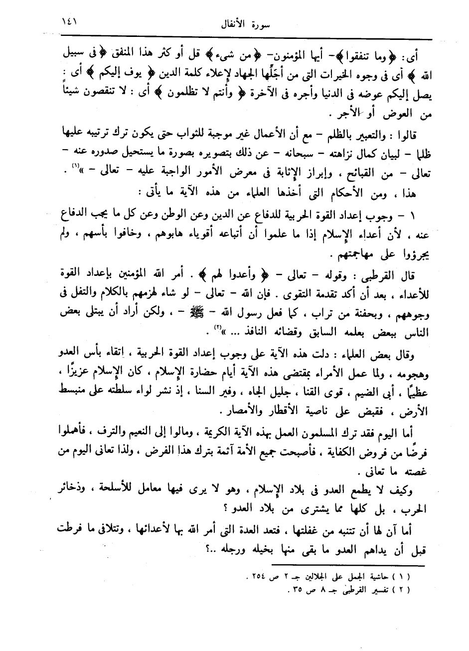 (1) حاشية الجمل على الجلالين ج 2 ص 254.
