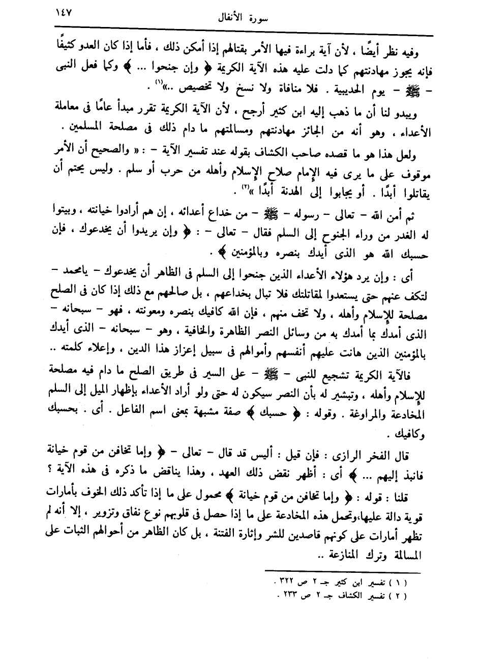 ويبدو لنا أن ما ذهب إليه ابن كثير أرجح، لأن الآية الكريمة تقرر مبدأ عاما في معاملة الأعداء، وهو أنه من الجائز مهادنتهم ومسالمتهم ما دام ذلك في مصلحة المسلمين.