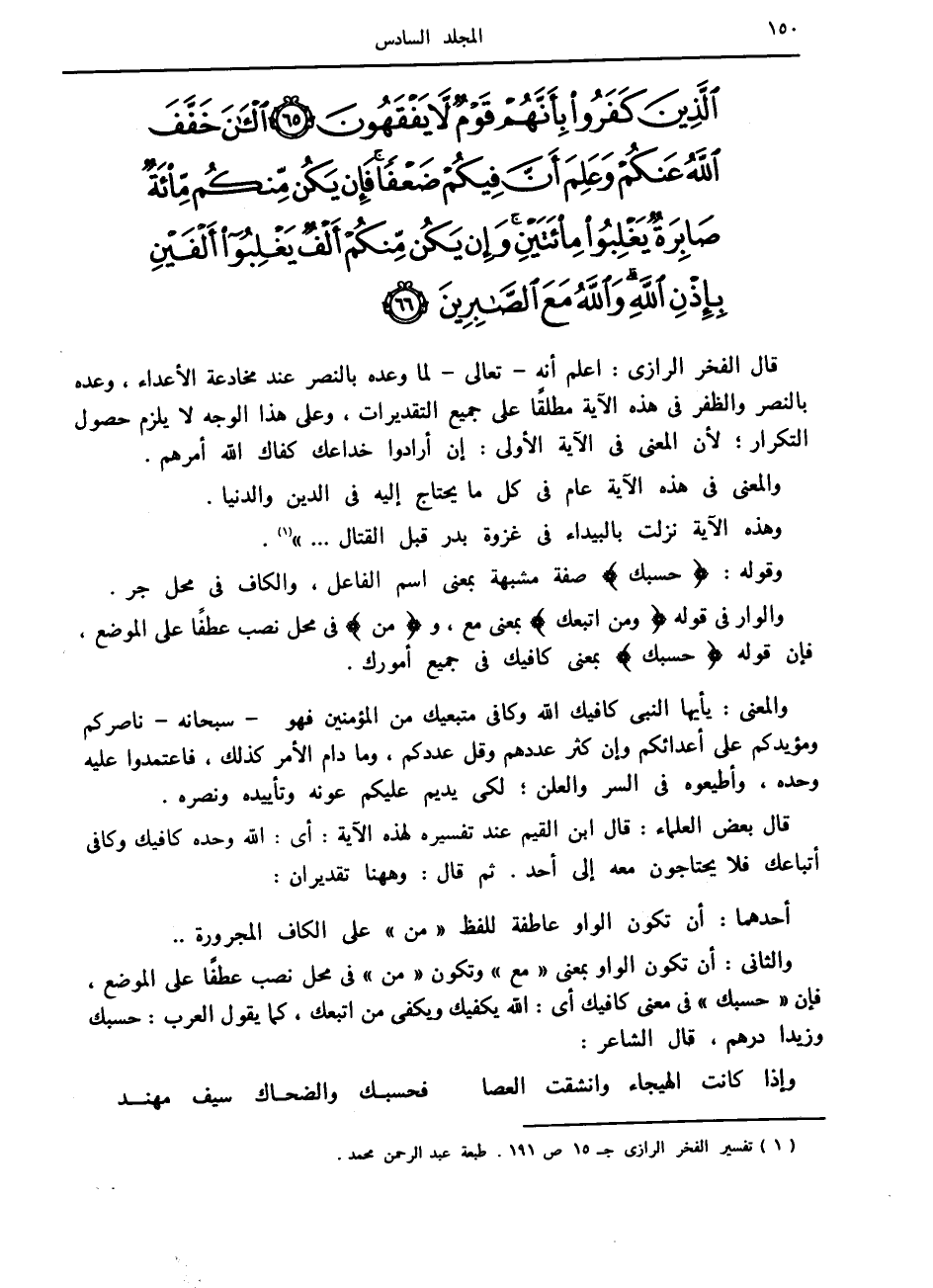 (1) تفسير الفخر الرازي ج 15 ص 191. طبعة عبد الرحمن محمد.