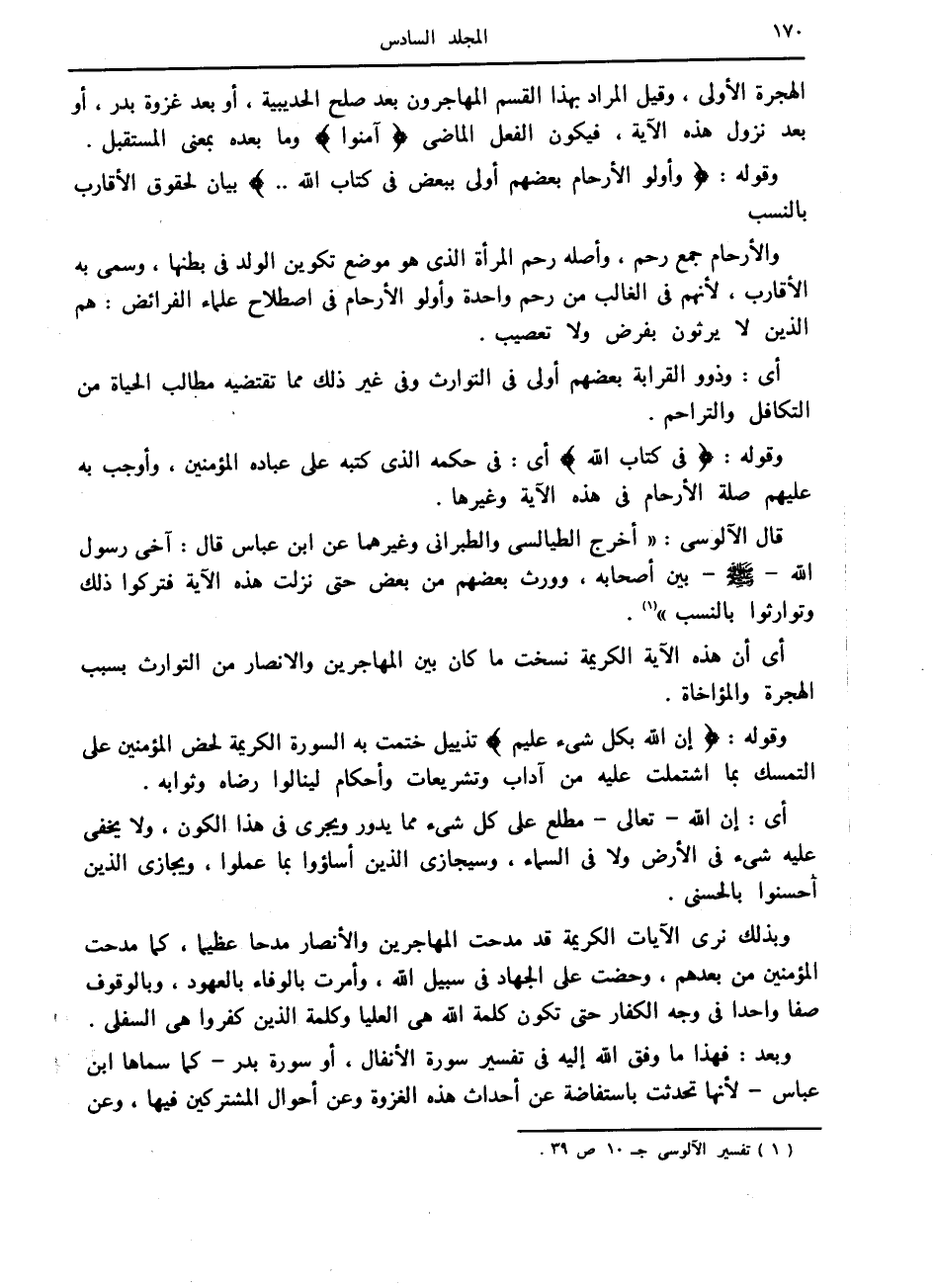 أى أن هذه الآية الكريمة نسخت ما كان بين المهاجرين والأنصار من التوارث بسبب الهجرة والمؤاخاة.