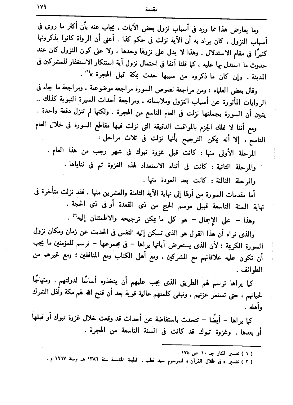 كما يراها- أيضا- تتحدث باستفاضة عن أحداث قد وقعت خلال غزوة تبوك أو قبلها أو بعدها. وغزوة تبوك قد كانت في السنة التاسعة من الهجرة.