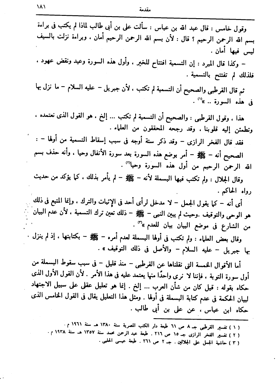 (3) حاشية الجمل على الجلالين. ج 2 ص 261. طبعة عيسى الحلبي.