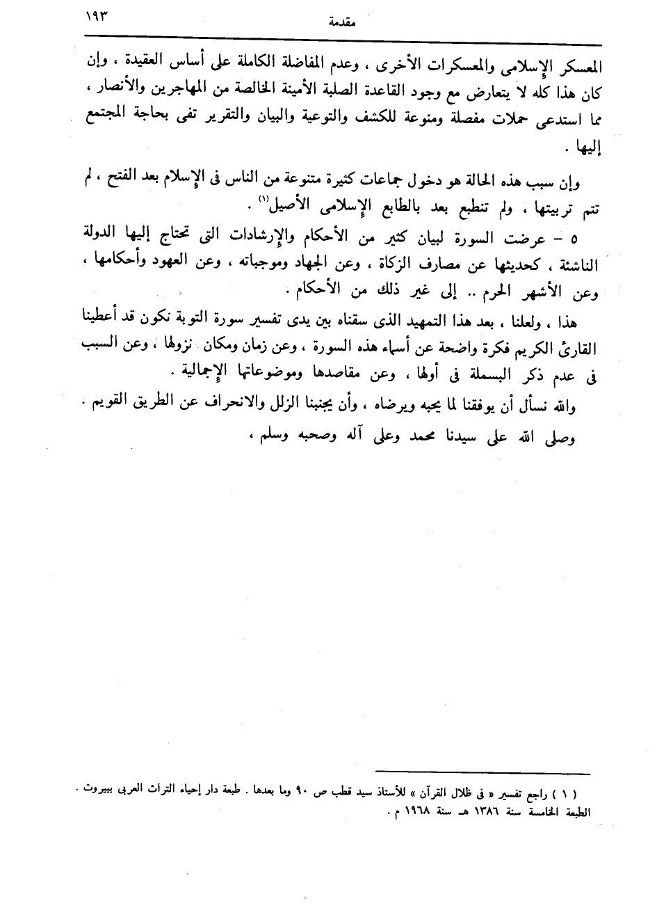 (1) راجع تفسير «في ظلال القرآن» للأستاذ سيد قطب ص 90 وما بعدها. طبعة دار إحياء التراث العربي ببيروت.