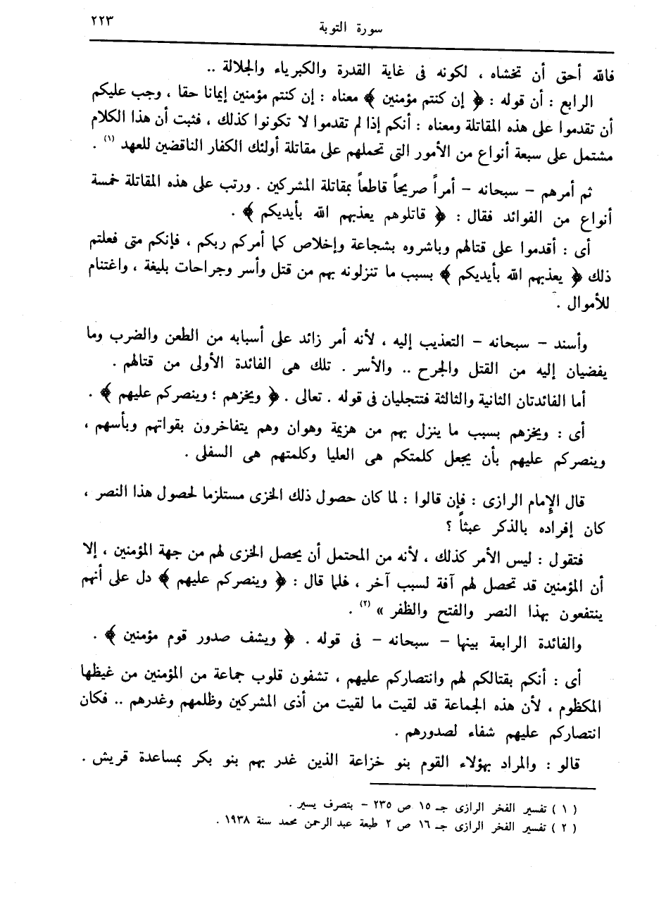 (2) تفسير الفخر الرازي ج 16 ص 2 طبعة عبد الرحمن محمد سنة 1938.