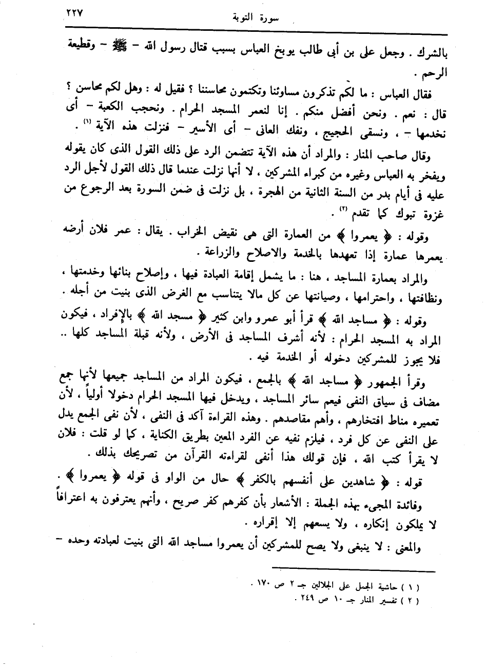 (1) حاشية الجمل على الجلالين ج 2 ص 170.