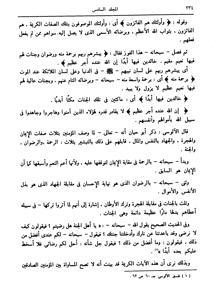 وثنى- سبحانه- بالرضوان الذي هو نهاية الإحسان في مقابلة الجهاد الذي هو بذل الأنفس والأموال.