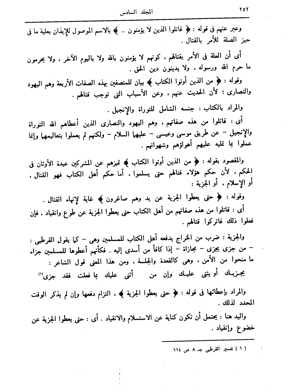 والجزية: ضرب من الخراج يدفعه أهل الكتاب للمسلمين وهي- كما يقول القرطبي: