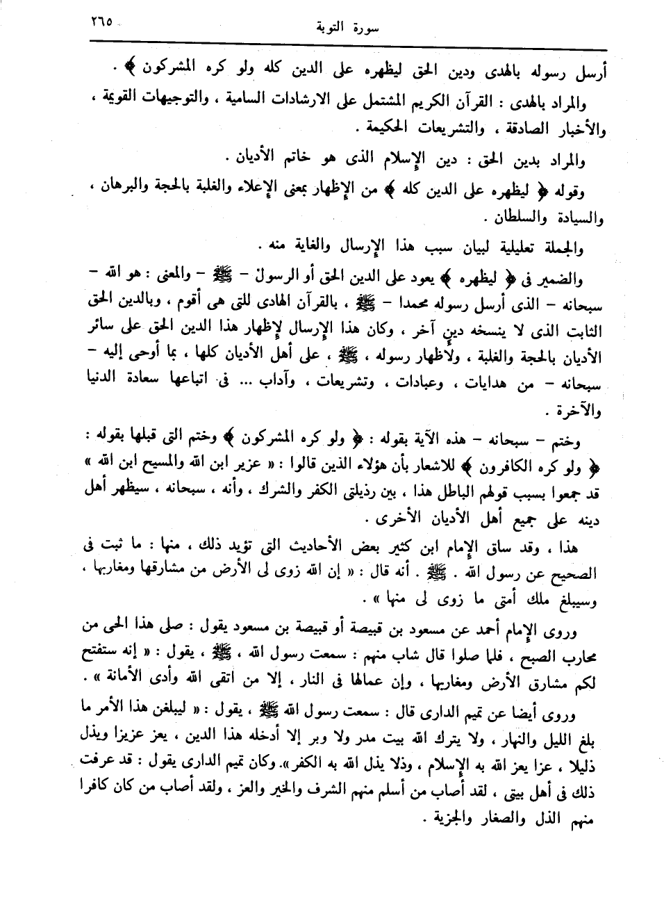 وقوله لِيُظْهِرَهُ عَلَى الدِّينِ كُلِّهِ من الإظهار بمعنى الإعلاء والغلبة بالحجة والبرهان، والسيادة والسلطان.