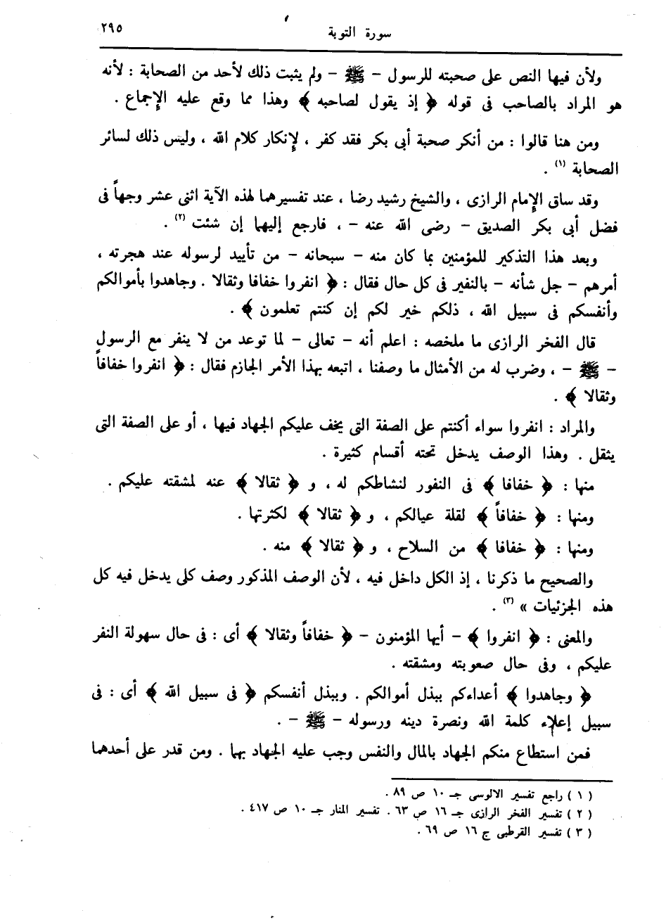 (2) تفسير الفخر الرازي ج 16 ص 63. تفسير المنار ج 10 ص 417.