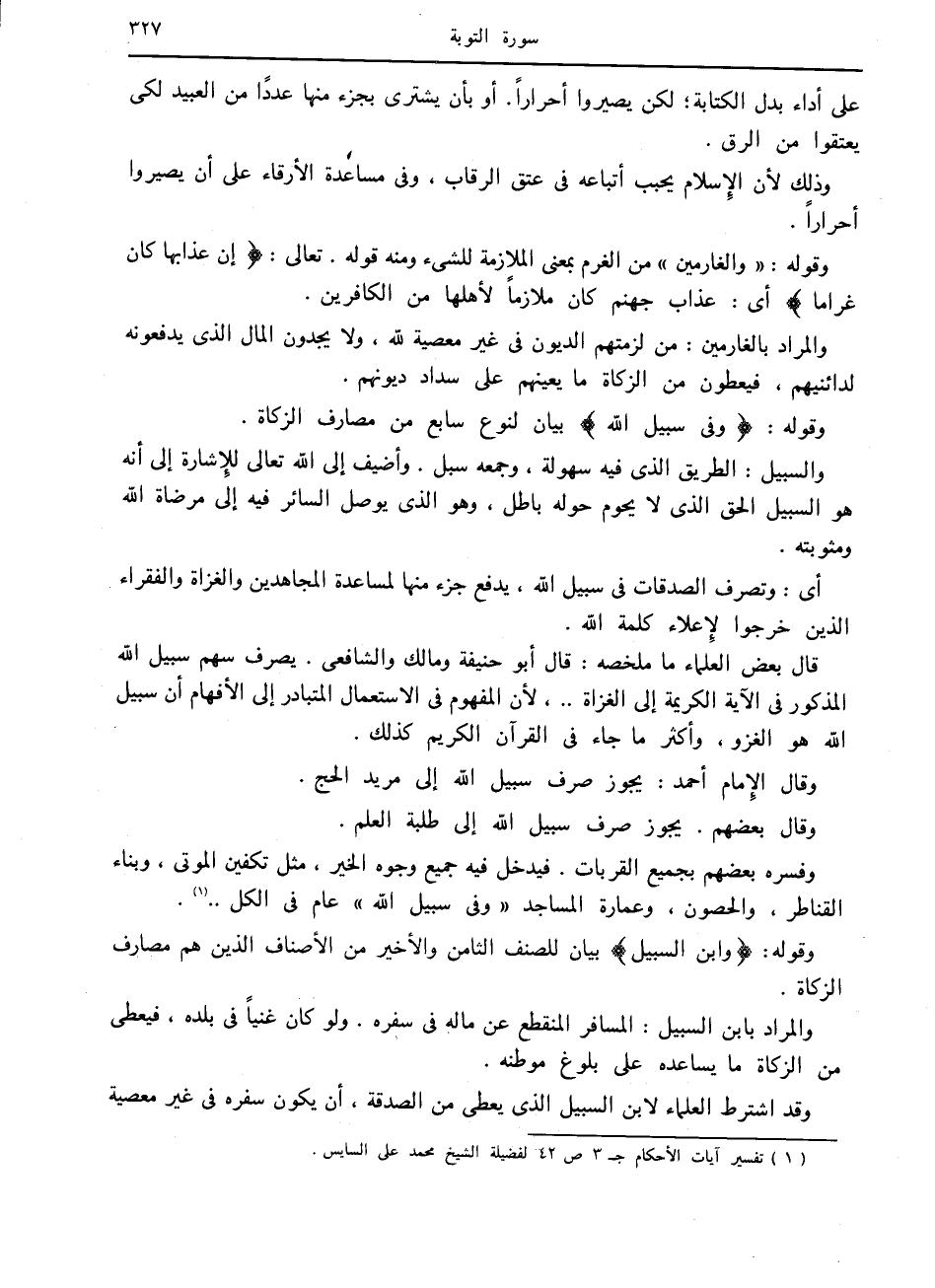 (1) تفسير آيات الأحكام ج 3 ص 42 لفضيلة الشيخ محمد على السائس.