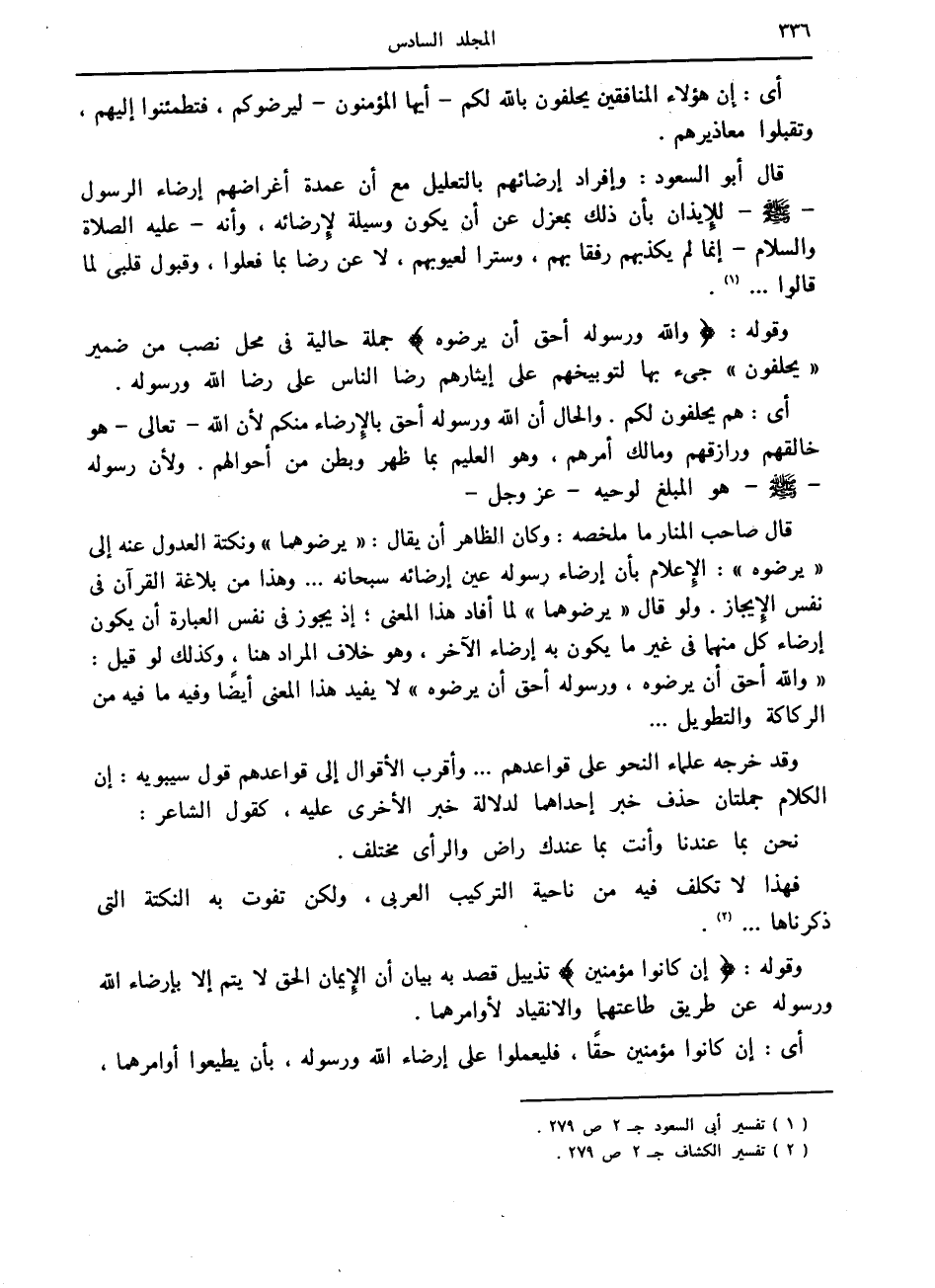 «والله أحق أن يرضوه، ورسوله أحق أن يرضوه» لا يفيد هذا المعنى أيضا وفيه ما فيه من الركاكة والتطويل ...