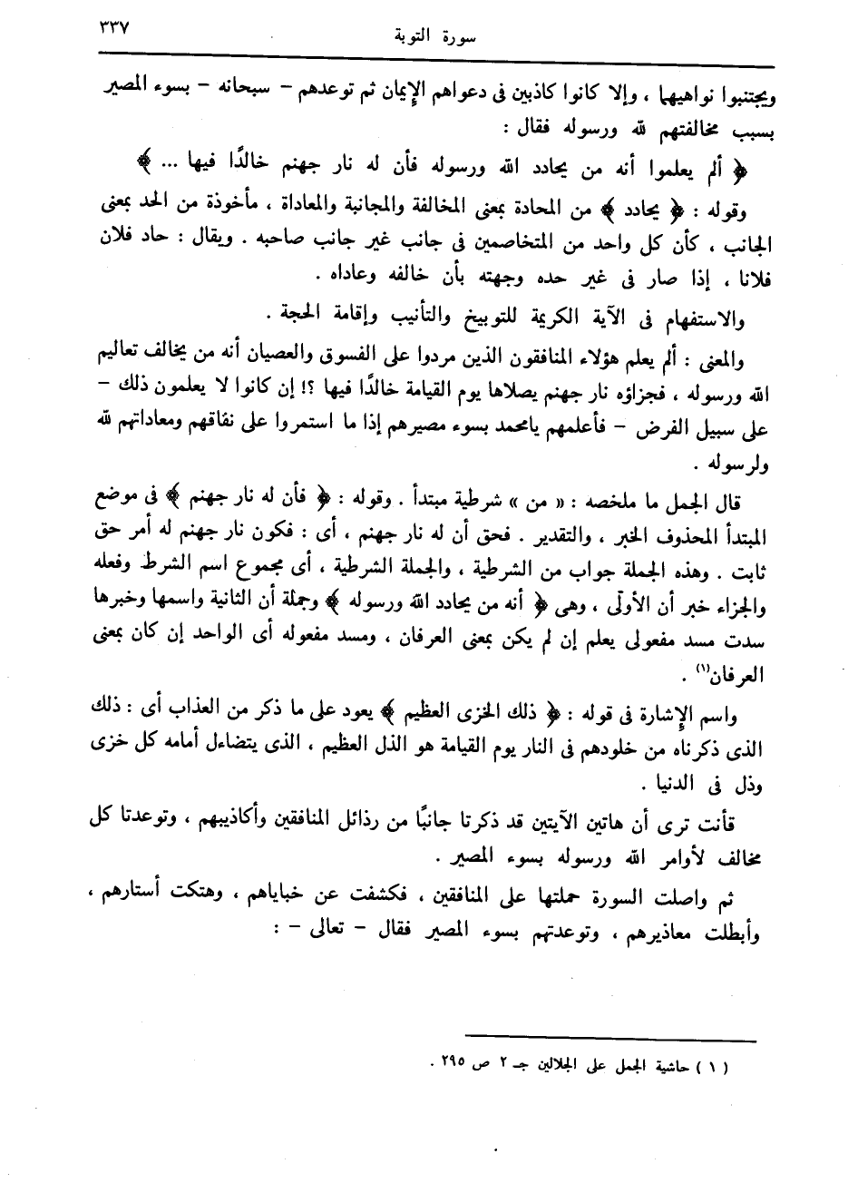 (1) حاشية الجمل على الجلالين ج 2 ص 295.