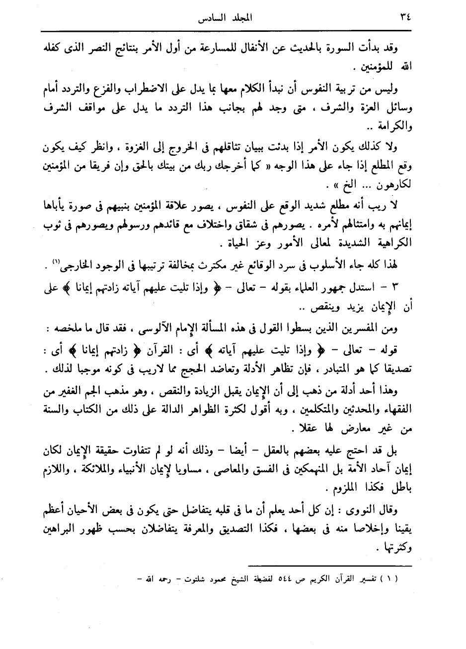 (1) تفسير القرآن الكريم ص 544 لفضيلة الشيخ محمود شلتوت- رحمه الله-