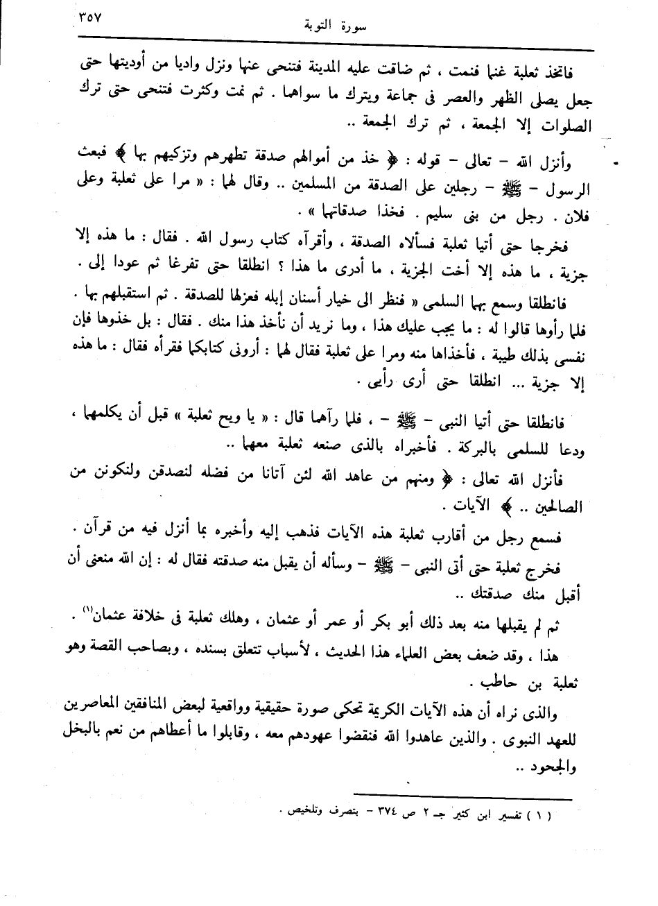 فأنزل الله تعالى: وَمِنْهُمْ مَنْ عاهَدَ اللَّهَ لَئِنْ آتانا مِنْ فَضْلِهِ لَنَصَّدَّقَنَّ وَلَنَكُونَنَّ مِنَ الصَّالِحِينَ.. الآيات.