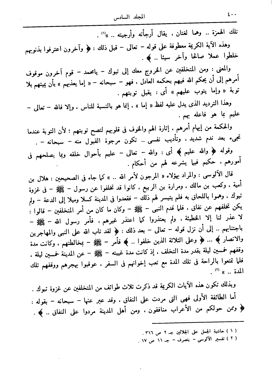 وبذلك تكون هذه الآيات الكريمة قد ذكرت ثلاث طوائف من المتخلفين عن غزوة تبوك.