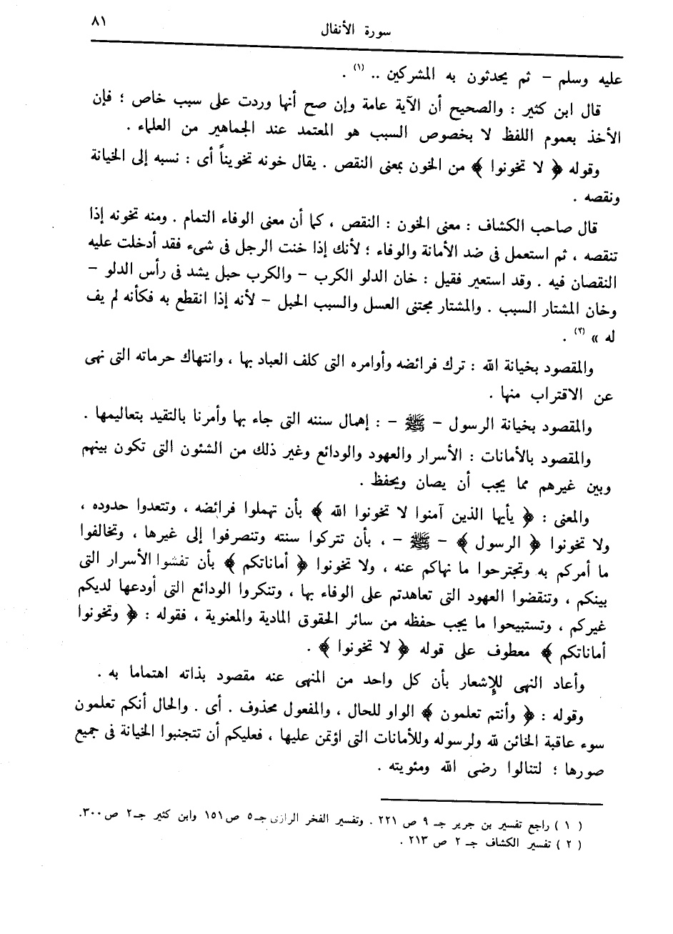 (1) راجع تفسير بن جرير ج 9 ص 221. وتفسير الفخر الرازي ج 5 ص 151 وابن كثير ج 2 ص 300.