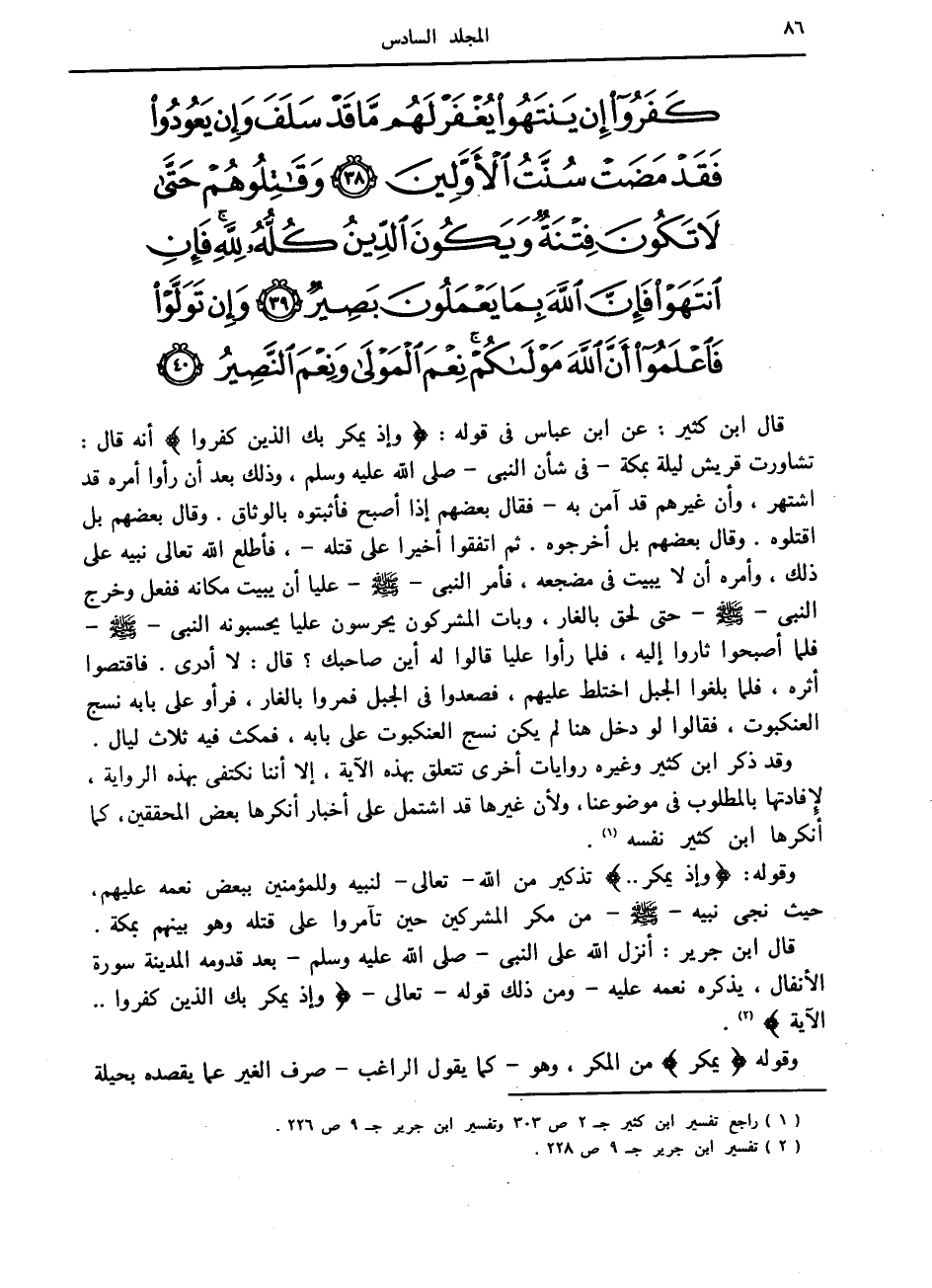 (1) راجع تفسير ابن كثير ج 2 ص 303 وتفسير ابن جرير ج 9 ص 226.