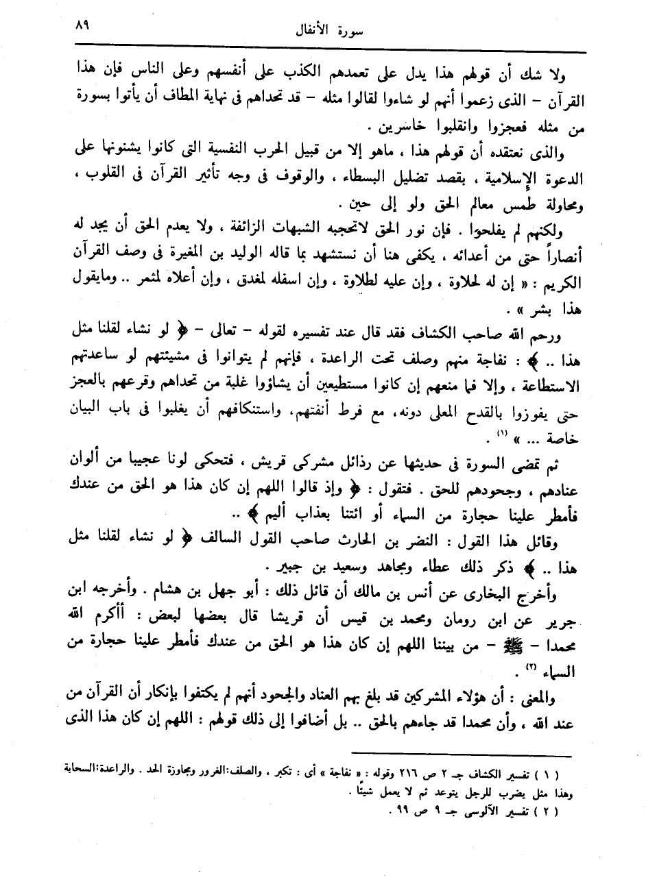 ولكنهم لم يفلحوا. فإن نور الحق لا تحجبه الشبهات الزائفة، ولا يعدم الحق أن يجد له أنصارا حتى من أعدائه، يكفى هنا أن نستشهد بما قاله الوليد بن المغيرة في وصف القرآن الكريم: «إن له لحلاوة، وإن عليه لطلاوة، وإن أسفله لمغدق، وإن أعلاه لمثمر.. وما يقول هذا بشر» .