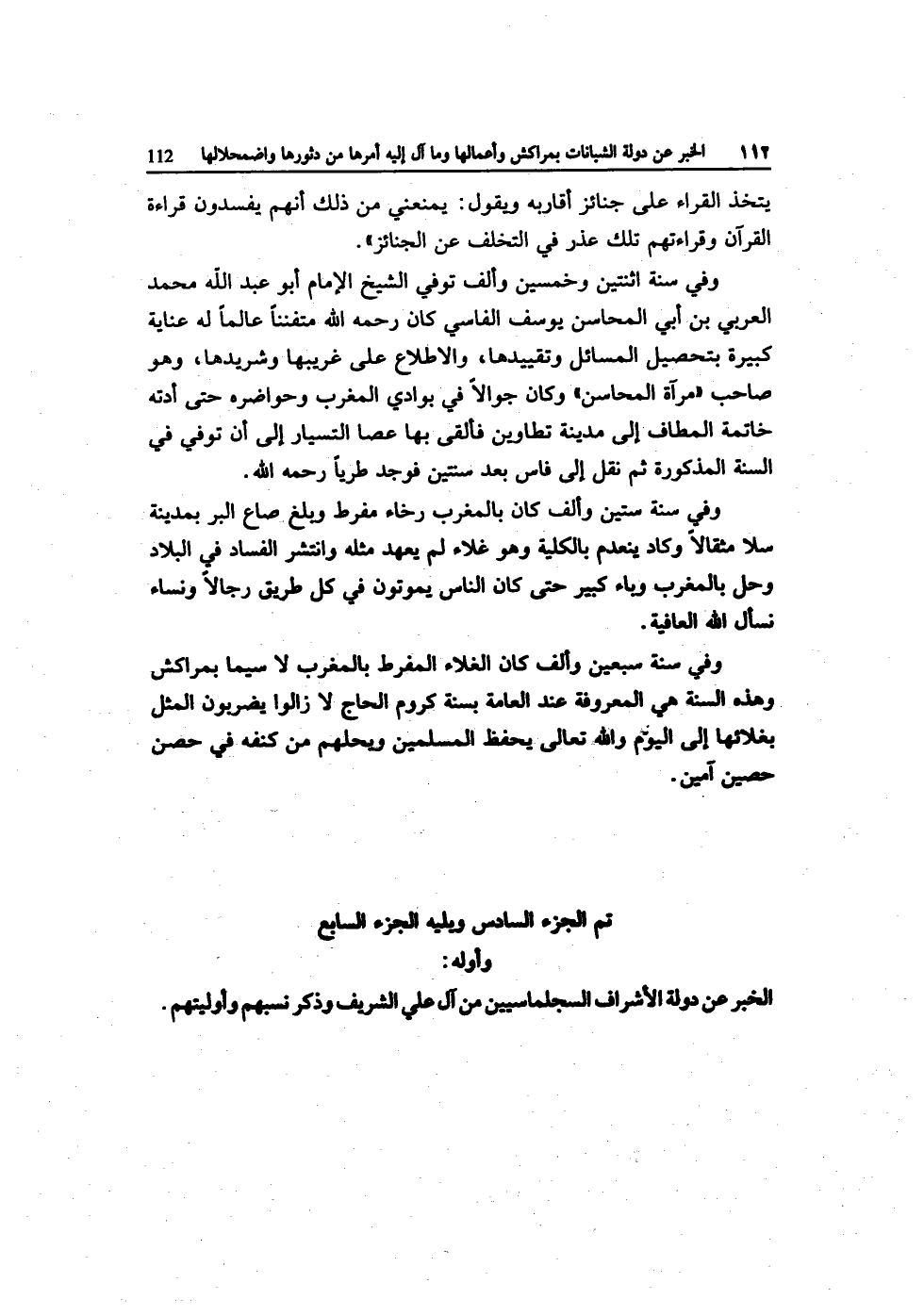 تمّ الْجُزْء السَّادِس ويليه الْجُزْء السَّابِع