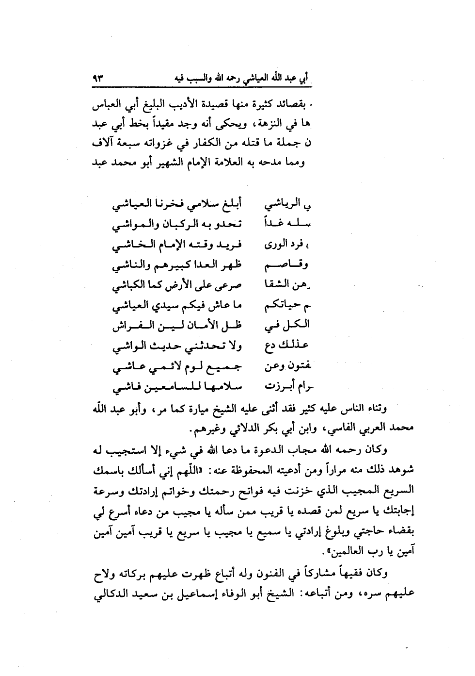 (يَا حادي الأظعان فِي الرياشي ... أبلغ سلامي فخرنا العياشي)