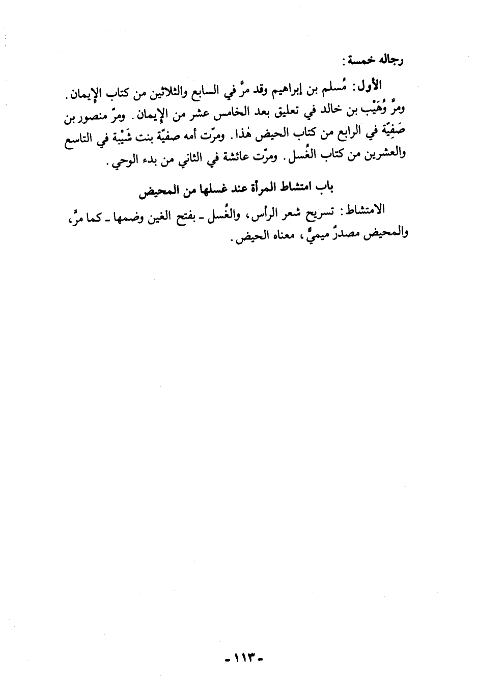 الأول: مُسلم بن إبراهيم وقد مرَّ في السابع والثلاثين من كتاب الإيمان. ومرَّ وُهَيْب بن خالد في تعليق بعد الخاص عشر من الإيمان. ومرّ منصور بن صَفِيّة في الرابع من كتاب الحيض هذا. ومرّت أمه صفيّة بنت شَيْبة في التاسع والعشرين من كتاب الغُسل. ومرّت عائشة في الثاني من بدء الوحي.