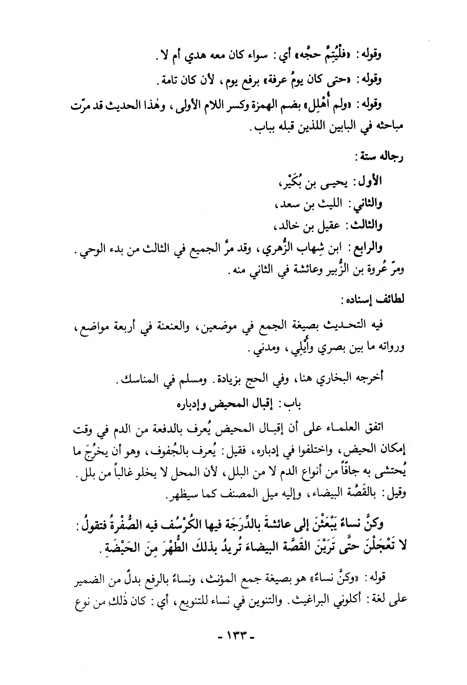 وقوله: "ولم أُهْلِل" بضم الهمزة وكسر اللام الأولى، وهذا الحديث قد مرّت مباحثه في البابين اللذين قبله بباب.