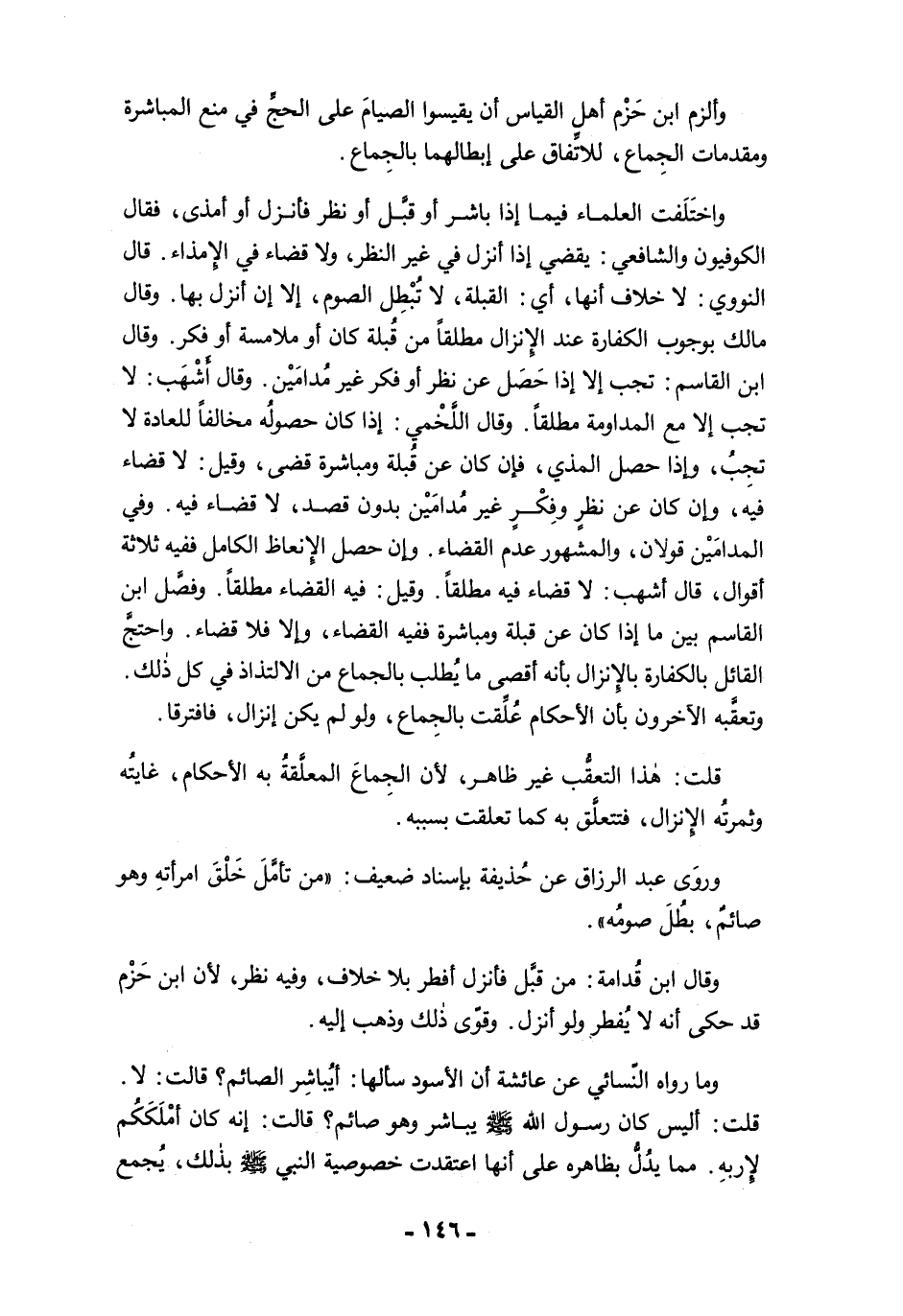 وألزم ابن حَزْم أهل القياس أن يقيسوا الصيامَ على الحجِّ في منع المباشرة ومقدمات الجِماع، للاتِّفاق على إبطالهما بالجِماع.