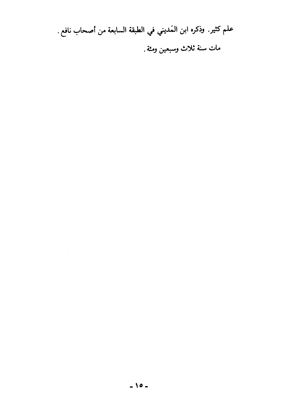 علم كثير. وذكره ابن المَديني في الطبقة السابعة من أصحاب نافع.
