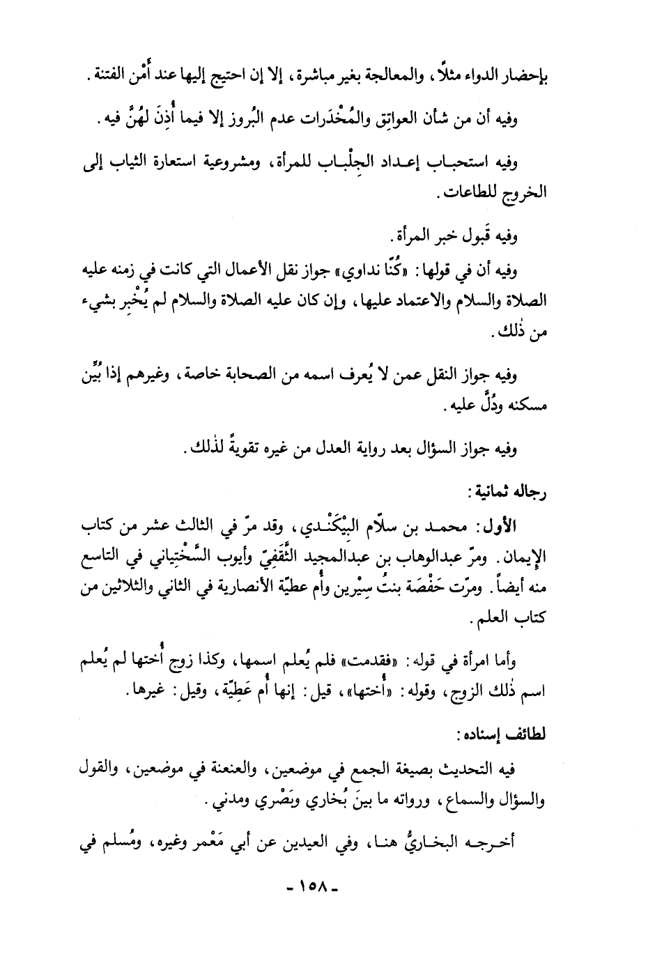 الأول: محمد بن سلاّم البيْكَنْدي، وقد مرّ في الثالث عشر من كتاب الإيمان. ومرّ عبد الوهاب بن عبد المجيد الثَّقَفِى وأيوب السَّخْتِياني في التاسع منه أيضًا. ومرّت حَفْصَة بنتُ سِيْرين وأُم عطيّة الأنصارية في الثاني والثلاثين من كتاب العلم.