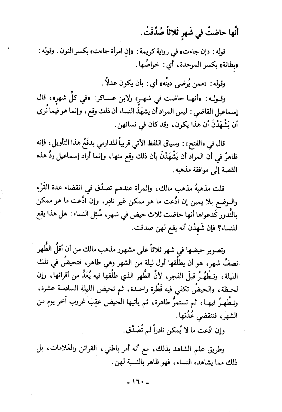 أنَّها حاضتْ في شَهرٍ ثَلاثًا صُدِّقَتْ.