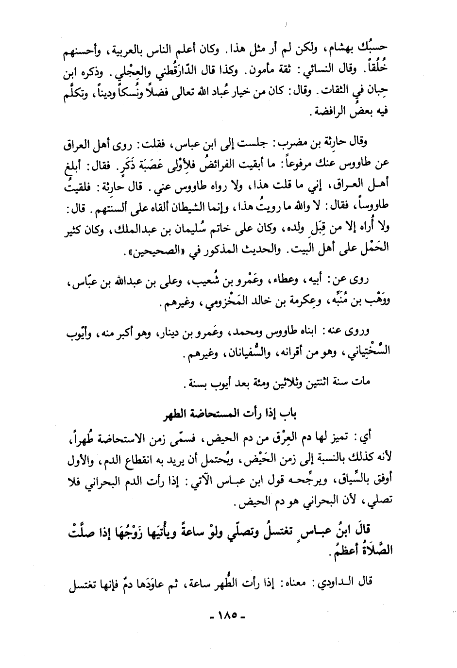 وقال حارِثة بن مضرب: جلست إلى ابن عباس، فقلت: روى أهل العراق عن طاووس عنك مرفوعًا: ما أبقيت الفرائضُ فلِأوْلى عَصَبَة ذَكَرٍ. فقال: أبلغ أهل العراق، إني ما قلت هذا، ولا رواه طاووس عني. قال حارِثة: فلقيتُ طاووسًا، فقال: لا والله ما رويتُ هذا، وإنما الشيطان ألقاه على ألسنتهم. قال: ولا أُراه إلا من قِبَلِ ولده، وكان على خاتم سُليمان بن عبد الملك، وكان كثير الحَمْل على أهل البيت. والحديث المذكور في "الصحيحين".