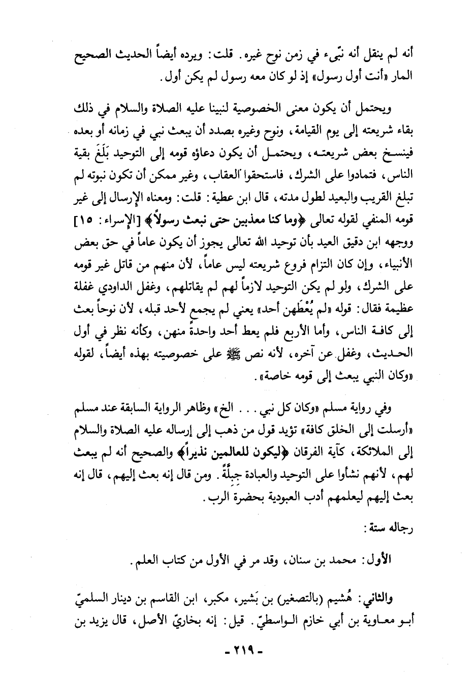 أنه لم ينقل أنه نبّىء في زمن نوح غيره. قلت: ويرده أيضًا لحديث الصحيح المار "أنت أول رسول" إذ لو كان معه رسول لم يكن أول.