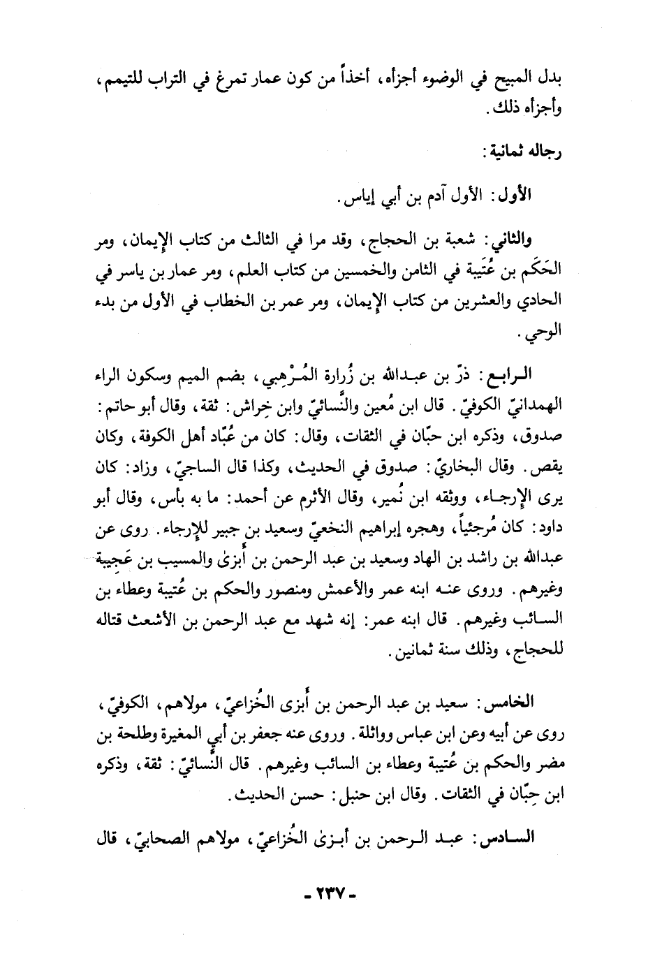 والثاني: شعبة بن الحجاج، وقد مرا في الثالث من كتاب الإيمان، ومرَّ الحَكَم بن عُتَيبة في الثامن والخمسين من كتاب العلم، ومرَّ عمار بن ياسر في الحادي والعشرين من كتاب الإِيمان، ومرَّ عمر بن الخطاب في الأول من بدء الوحي.