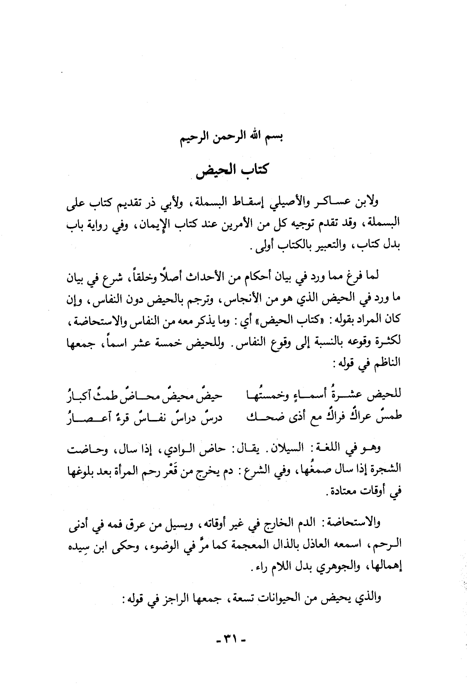 للحيض عشرةُ أسما وخمستُها ... حيضٌ محيضٌ محاضٌ طمثٌ اكبارُ