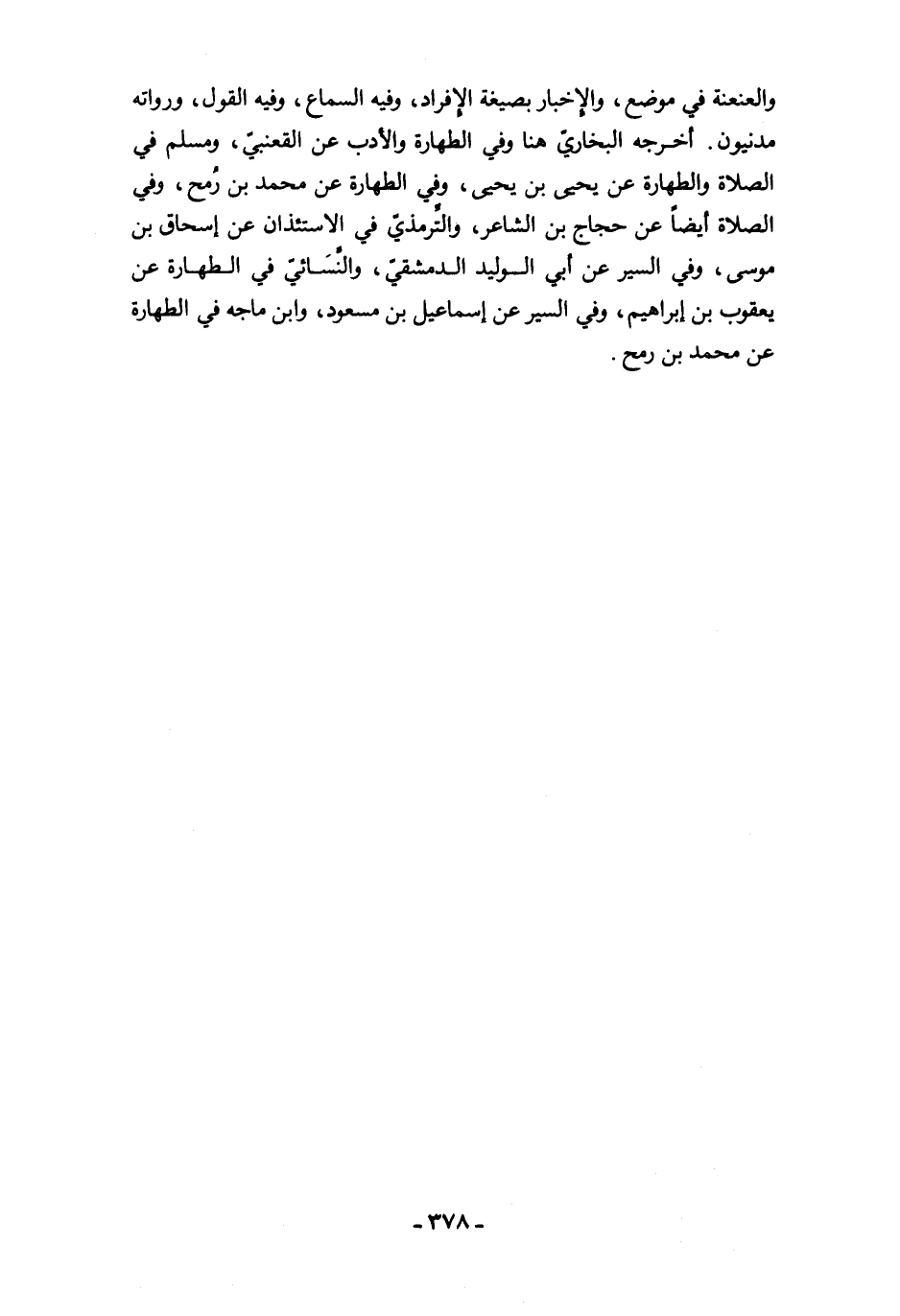 والعنعنة في موضع، والإخبار بصيغة الإفراد، وفيه السماع، وفيه القول، ورواته مدنيون. أخرجه البخاريّ هنا وفي الطهارة والأدب عن القعنبيّ، ومسلم في الصلاة والطهارة عن يحيى بن يحيى، وفي الطهارة عن محمد بن رُمح، وفي الصلاة أيضًا عن حجاج بن الشاعر، والتِّرمذيّ في الاستئذان عن إسحاق بن موسى، وفي السير عن أبي الوليد الدمشقيّ، والنَّسَائيّ في الطهارة عن يعقوب بن إبراهيم، وفي السير عن إسماعيل بن مسعود، وابن ماجه في الطهارة عن محمد بن رمح.